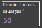 I have no affiliation to Premier Inn but I do find them to work well for me when I am travelling around. The rooms are comfy and purple. I like their breakfast too and hence the 50 estimated sausages consumed as part of an English breakfast included on the dashboard.
